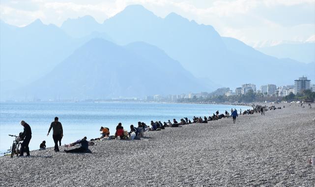 Antalya'da güneşli havayı fırsat bilenler sahillerde yoğunluk oluşturdu
