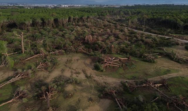Antalya'da hortumun zarar verdiği ormanlık alan havadan görüntülendi