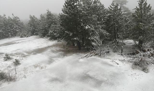 Balıkesir Sındırgı'da yüksek kesimlere kar yağdı