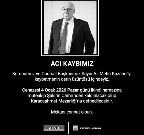Cenazesi, bugün (4 Ocak 2026) ikindi namazına müteakip İstanbul Üsküdar'daki Şakirin Camii'nden kaldırılacak ve Karacaahmet Mezarlığı'na defnedilecek.Ali Metin Kazancı kimdir?Ali Metin Kazancı, iş hayatına 1950 yılında adım atmıştır. Kazancı Holding’in temellerini de yine bu dönemde atan Ali Metin Kazancı, Grup Şirketlerini oluşturan girişimlerinin temeli olan Watt Elektrik Motor Fabrikası’nı 1968 yılında kurmuştur. Başarılı teşebbüsleriyle 1983 yılı itibarıyla enerji sektöründe çeşitli şirketler kuran Ali Metin Kazancı, 1994 yılında şirketleri holding yapısı altında toplamıştır.