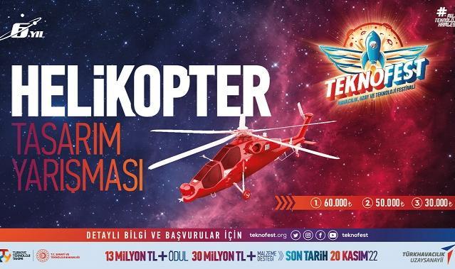 TEKNOFEST Helikopter Tasarım Yarışması İçin Hazır TEKNOFEST Havacılık, Uzay ve Teknoloji Festivali kapsamında düzenlenen Helikopter Tasarım Yarışması için başvurular devam ediyor. TEKNOFEST Teknoloji Yarışmalarına başvuru tarihi 30 Kasım tarihine uzatıldı. Genç mühendisler bu fırsatı kaçırma, projeni tamamla TEKNOFEST 2023’te yerini al.