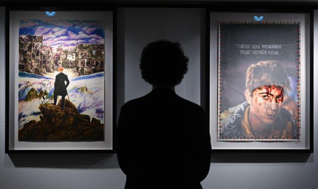 Türk sanatçı Ahmet Yusuf Aygeç'in Filistinlilerin yaşadıklarını, Filistin'in ulusal şairi Mahmud Derviş'in dizeleriyle harmanlayarak anlattığı "Sürgündeki Zeytin Ağacına Posterler" Sergisi, Londra'da sanatseverlerle buluştu.Aygeç'in kuru boya ve toz pastel kullanarak hazırladığı, küratörlüğünü Samed Karagöz'ün yaptığı, 20 eserden oluşan serginin açılışı, P21 Gallery'de gerçekleştirildi.P21 Gallery ile Saka Sanat işbirliğiyle, Londra Yunus Emre Enstitüsünün desteğiyle düzenlenen açılış törenine Türkiye'nin Londra Büyükelçisi Osman Koray Ertaş ile AK Parti İstanbul Milletvekili Rümeysa Kadak da katıldı.Ertaş, AA muhabirine yaptığı açıklamada, Türk sanatçı tarafından hazırlanan, Filistin'deki drama ışık tutan serginin çok anlamlı olduğunu söyledi.Filistinliler iki yılı aşkın süredir İsrail'in kıyımına maruz kalsalar da Filistin sorununun çok daha uzun yıllardır devam ettiğini belirten Ertaş, "Bu davanın en büyük destekçilerinden biri de Türkiye ve Türk halkıdır. Türkiye, son iki yıldır hem diplomasi hem yardımlar alanında hem de toplumsal tepki anlamında duruşunu ortaya koydu." diye konuştu.Ertaş, Filistin konusunda küresel düzeyde gösterilen tepkinin de değerli olduğunu ifade ederek, Türkiye'nin hem toplumsal hem de devlet düzeyinde elinden geleni yapmayı sürdüreceğini vurguladı.- Hanzala, "Bulutların üzerinde yolculukta"Sanatçı Aygeç de işçiliğinin 10 ayı bulduğu serginin hazırlığının bir yıllık bir süreçte tamamlandığını anlattı.Eserlerin her birinin farklı konuyu işlediğine dikkati çeken Aygeç, "Filistin'in şu anki durumu 3-5 yıldan ibaret değil. Sosyal medyanın kullanımıyla güncel olarak herkesin buna hassasiyet gösterdiğini anlıyoruz ama yaklaşık 100 yıla yakın süredir orada bu problem devam ediyor." ifadelerini kullandı.Aygeç, sergilenen eserlerdeki farklı kompozisyonlara da değinerek, "Caspar David Friedrich'in bir resmini (Bulutların üzerinde yolculuk) Hanzala ile bir araya getirdim ve kendime ait bir kurgu oluşturdum. Filistin'in kendi edebiyatçılarının, şairlerinin de süreç içerisinde bu problemle alakalı nasıl direniş gösterdiğini ele almaya çalıştım." dedi.Sanatçı, serginin bir senelik hazırlık sürecinin araştırma, konu başlıklarını çıkarma ve psikolojiyi idare etmekle geçtiğini dile getirdi.- İlhamını Filistinli şairlerden aldıKüratör Karagöz de serginin adını Filistinli şair Mahmud Derviş'in "Sürgündeki zeytin ağacına mektuplar" dizelerinden aldığını söyledi.Sergideki eserlerin Filistin'de yaşanmaya devam eden bazı problemleri gösterdiğini anlatan Karagöz, "Bunlar, geçmiş zamanda kalmış problemler değil bu problem 100 yıldır devam ediyor." dedi.Karagöz, serginin Filistin'in önde gelen şairlerinden ilhamla ortaya çıktığının altını çizerek, "Londra, sanatın bir merkezi ama sadece o da değil. Geçmiş dönemde yaşadığımız kolonyal düşüncenin de merkezlerinden. Bu kolonyal yaşantının ve yaklaşımın bir sonucu aslında Filistin'de bugün yaşanan problemler. (Sergi) Ona bir cevap niteliği de taşıyor." ifadelerini kullandı.Sergi, 15-30 Ocak'ta Londra'nın King's Cross bölgesi yakınlarındaki galeride ziyaret edilebilecek.